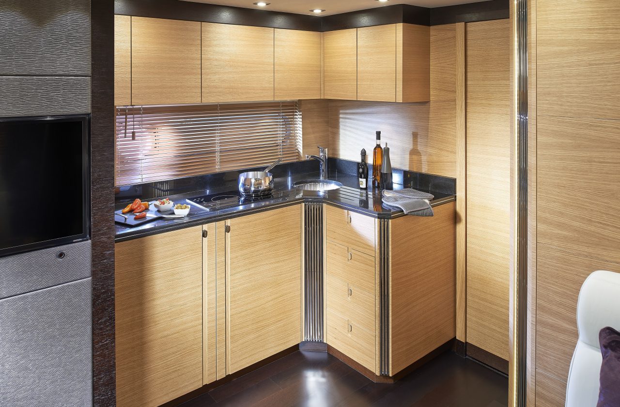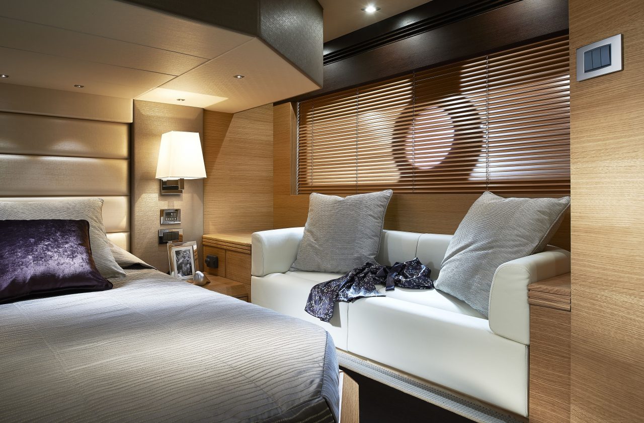 The San Remo is a spectacle in any waters. Light, spacious and expertly finished, the main saloon is a practical and welcoming space that guarantees space, brightness and privacy. The impeccable styling and refined approach continue below deck, where up to four guests can enjoy a stay in the generously sized cabins.