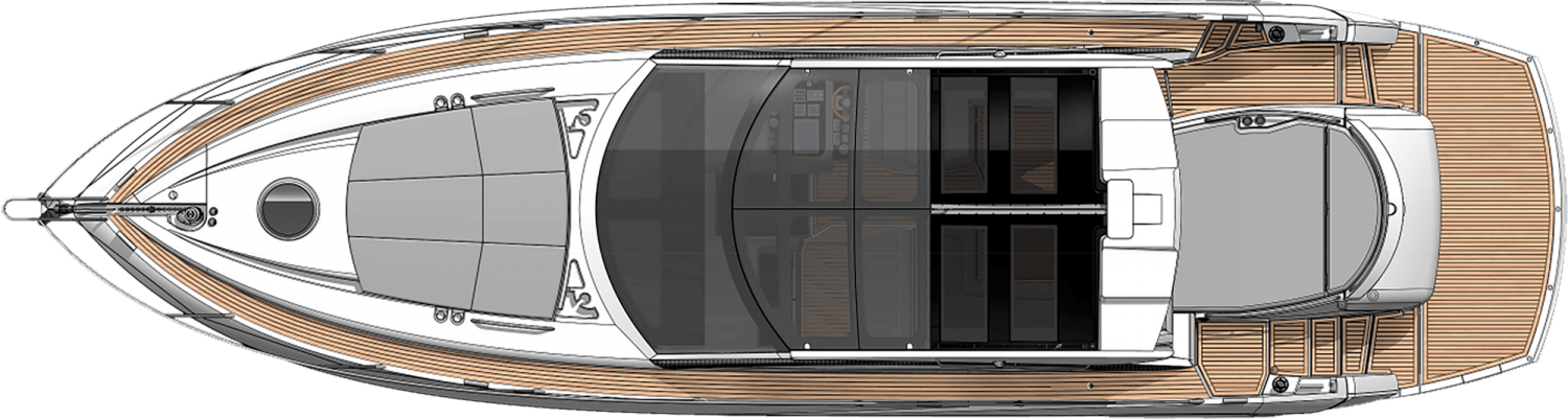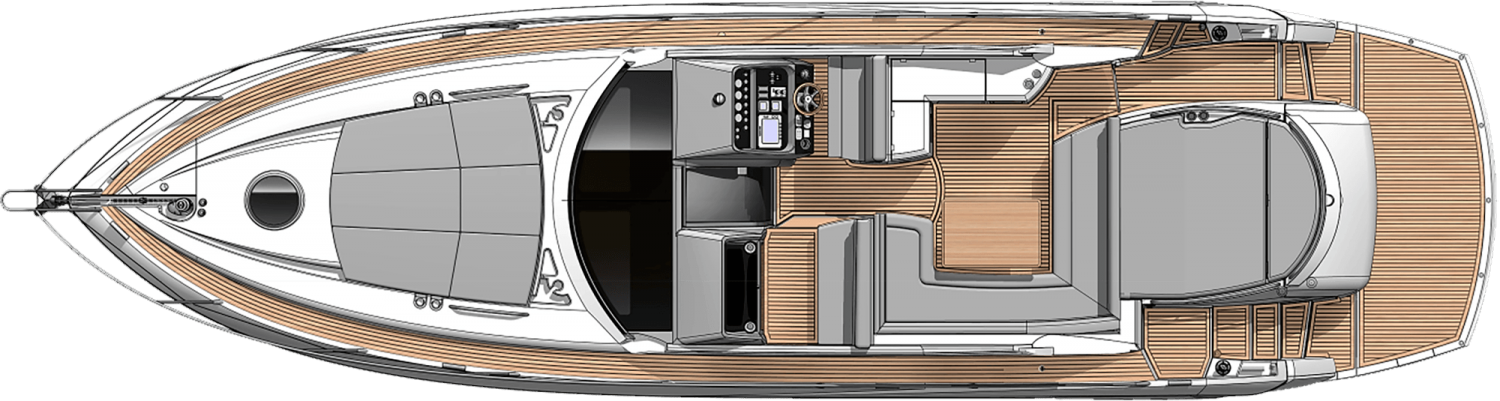Outside, two large sunpads and bathing platform are ideal for relaxing in the sun or hosting your own party out at sea. Your own private sanctuary, this exceptional performance cruiser is perfect for days out and long weekends. The ultimate Silverain and the winner of the Best Sportscruiser over 45ft category in the Motor Boat Awards 2014.