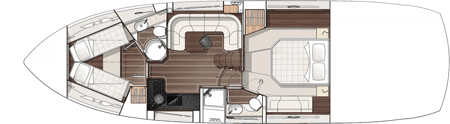 The San Remo is a spectacle in any waters. Light, spacious and expertly finished, the main saloon is a practical and welcoming space that guarantees space, brightness and privacy. The impeccable styling and refined approach continue below deck, where up to four guests can enjoy a stay in the generously sized cabins.
